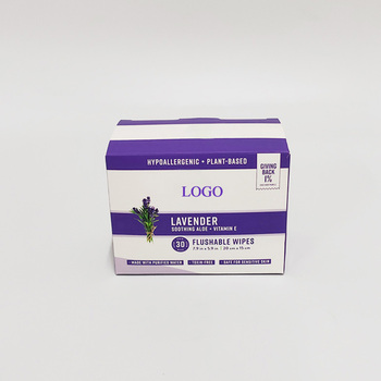 Custom Flushable Lavender Calmante Aloe Nonwoven Limpeza 30 PCS Toalhetes na Caixa